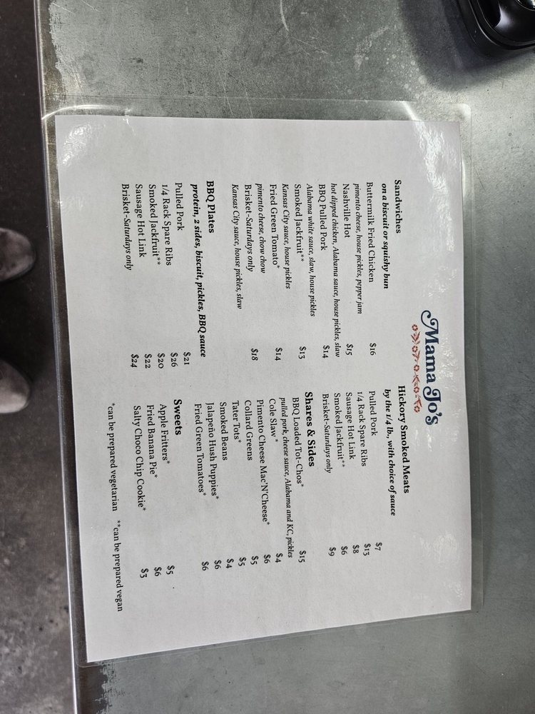 Mama Jo's Chicken, Biscuits, BBQ Menu